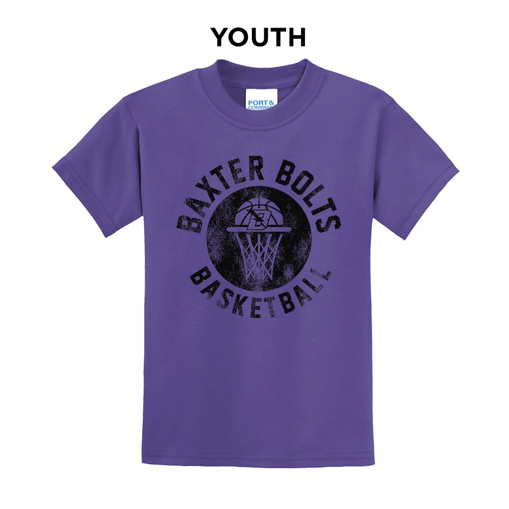 Baxter Bolts Basketball Youth Short Sleeve Tee-Purple