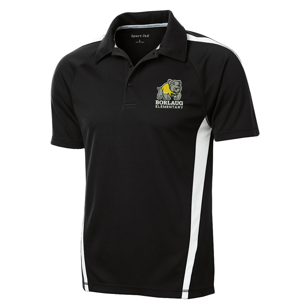 Borlaug Elementary Sport Tek Men PosiCharge Micro Mesh Colorblock Polo-Black/White