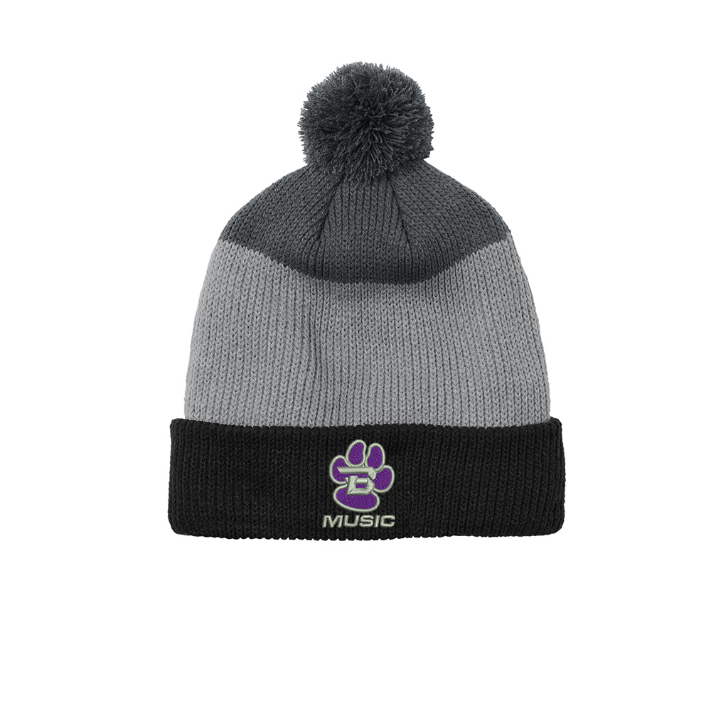 Burlington Music Port Authority Cozy Striped Pom Beanie-Deep Black/Gusty Grey