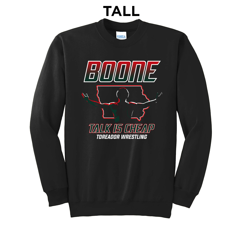 Boone Wrestling Tall Fleece Crewneck Sweatshirt-Black