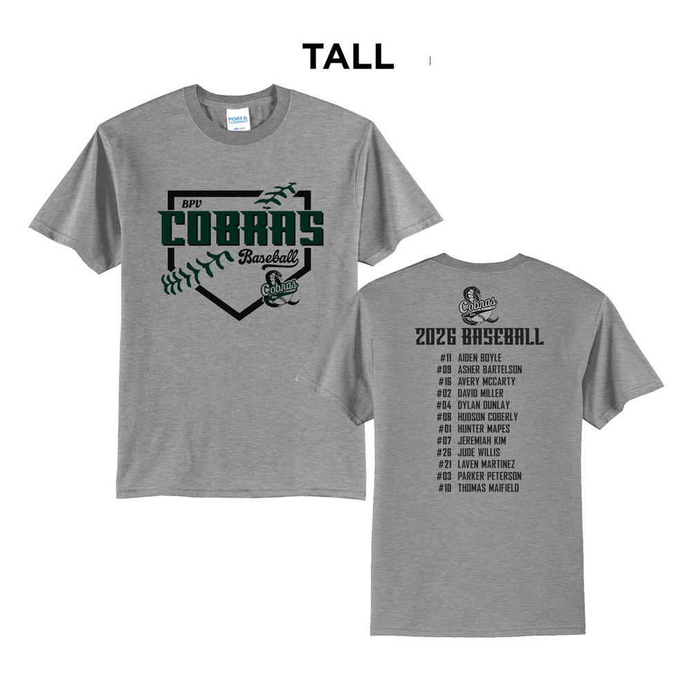 BPV Cobras Tall Short Sleeve Cotton Tee-Grey
