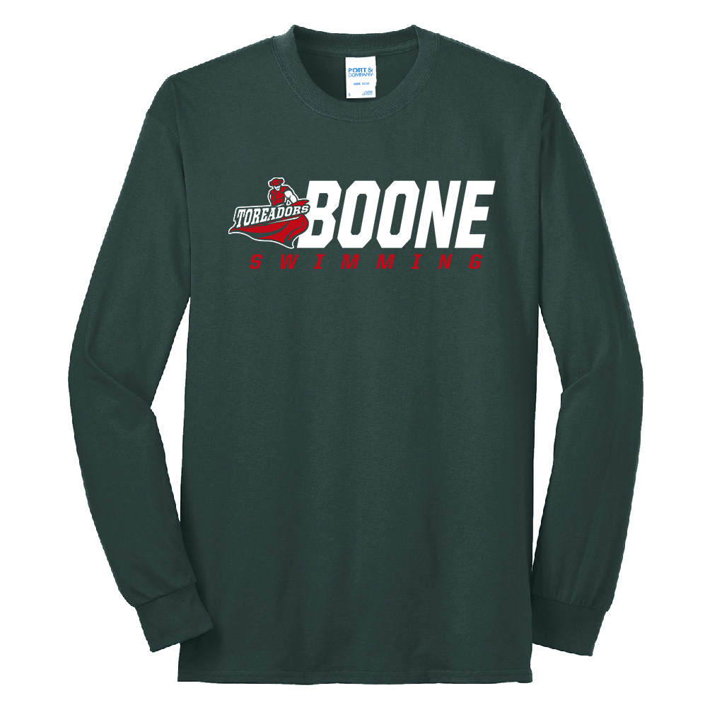 Boone Swimming Unisex Cotton Long Sleeve Tee-Dark Green