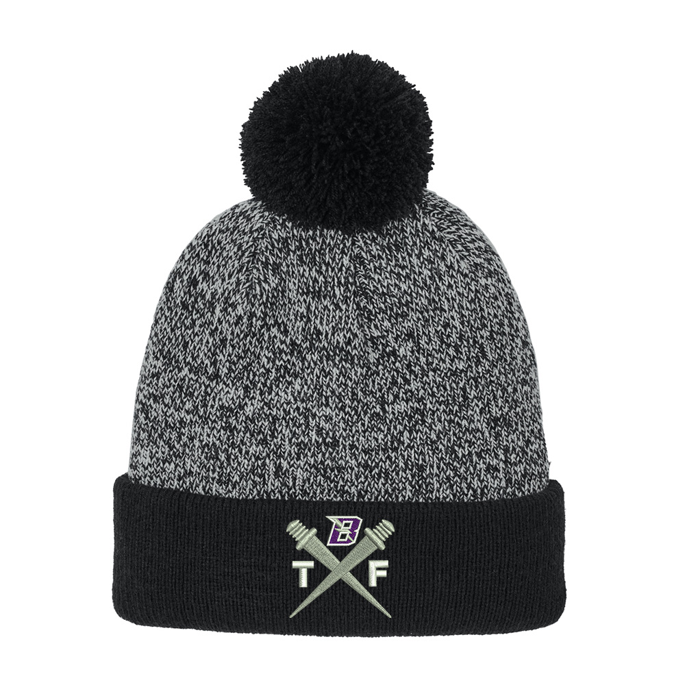 Baxter Track Field Sport-Tek Halftime Heather Pom Beanie-Black/Silver