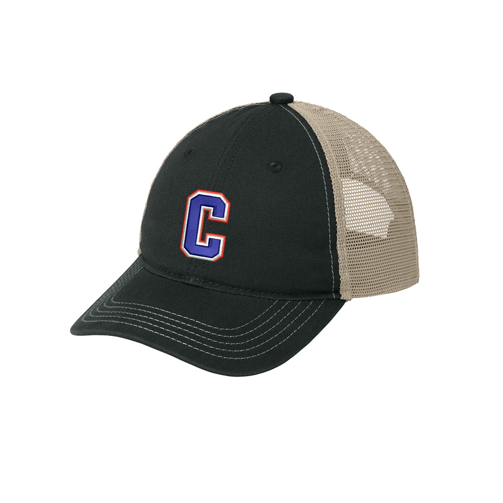 Fabric: 100% cotton twill front panels, 100% polyester mesh mid and back panels