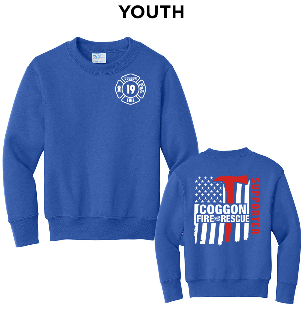 Coggon Fire Youth Fleece Crewneck Sweatshirt-Royal