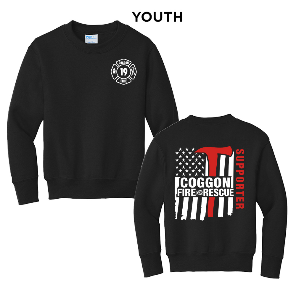 Coggon Fire Youth Fleece Crewneck Sweatshirt-Black