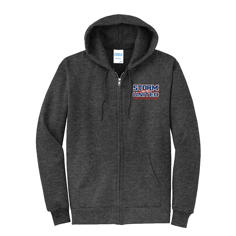 Camanche Girls Wrestling Adult Company Classic Full-Zip Hooded Sweatshirt-Dark Heather Grey