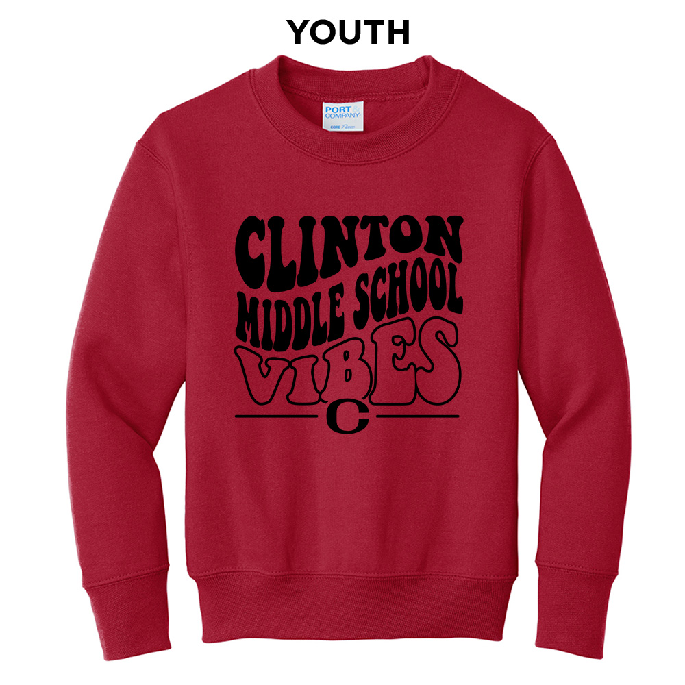 Clinton MS Youth Fleece Crewneck Sweatshirt-Red