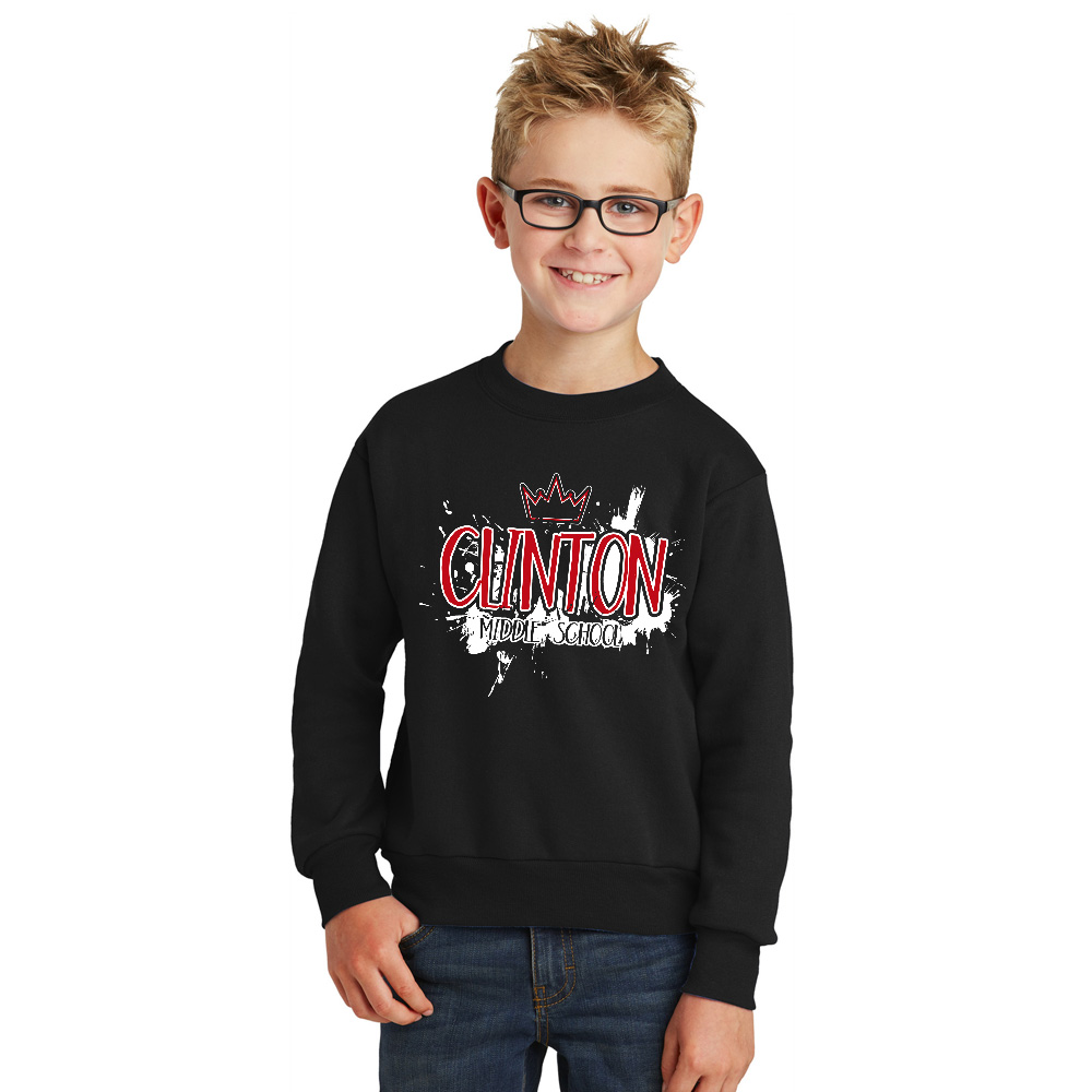 Clinton MS Youth Fleece Crewneck Sweatshirt-Black
