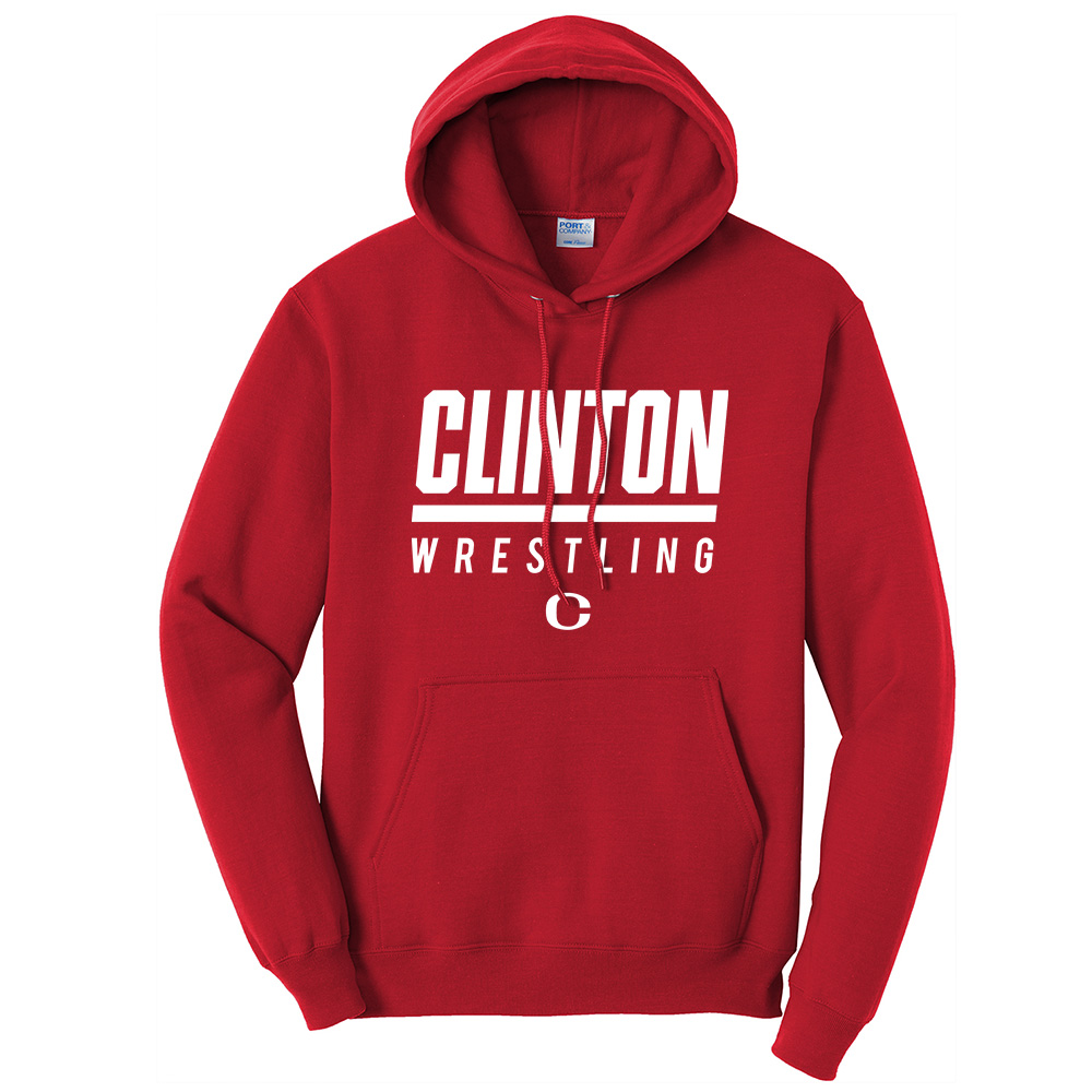 Clinton MS Wrestling Unisex Fleece Hooded Sweatshirt-Red