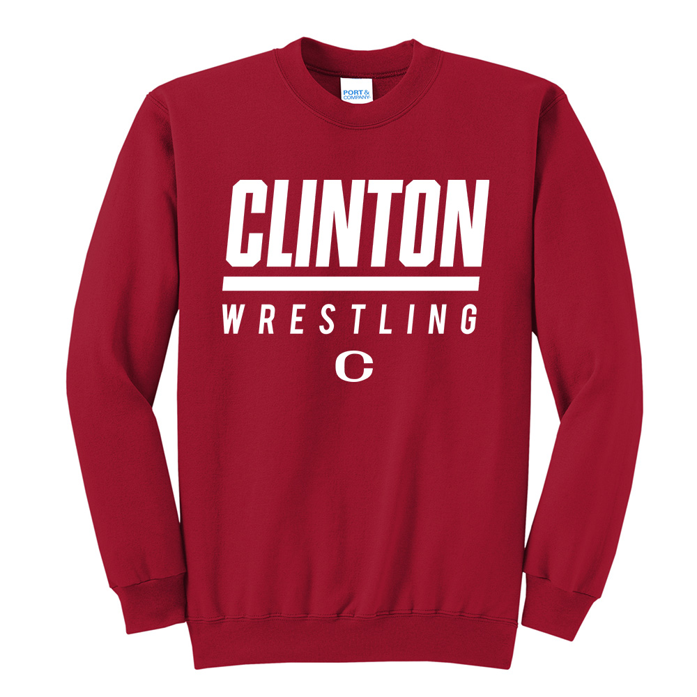Clinton MS Wrestling Unisex Fleece Crewneck Sweatshirt-Red