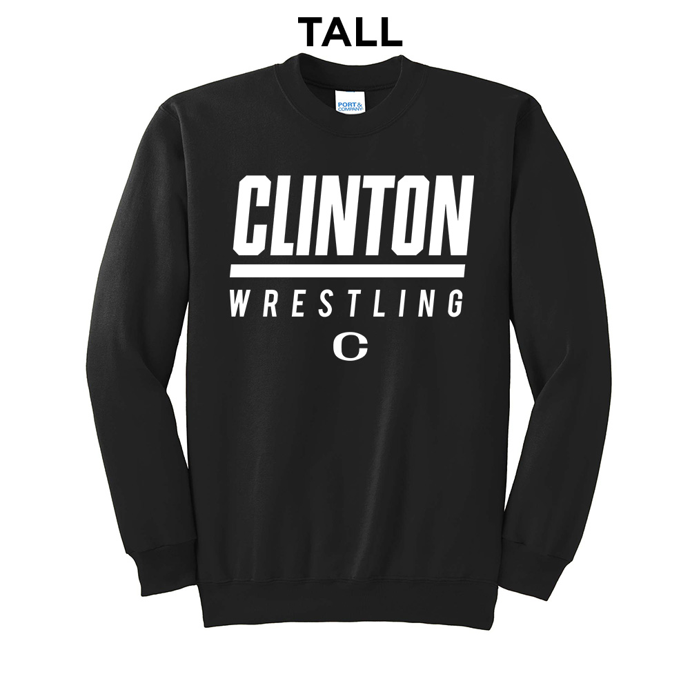 Clinton MS Wrestling Tall Fleece Crewneck Sweatshirt-Black