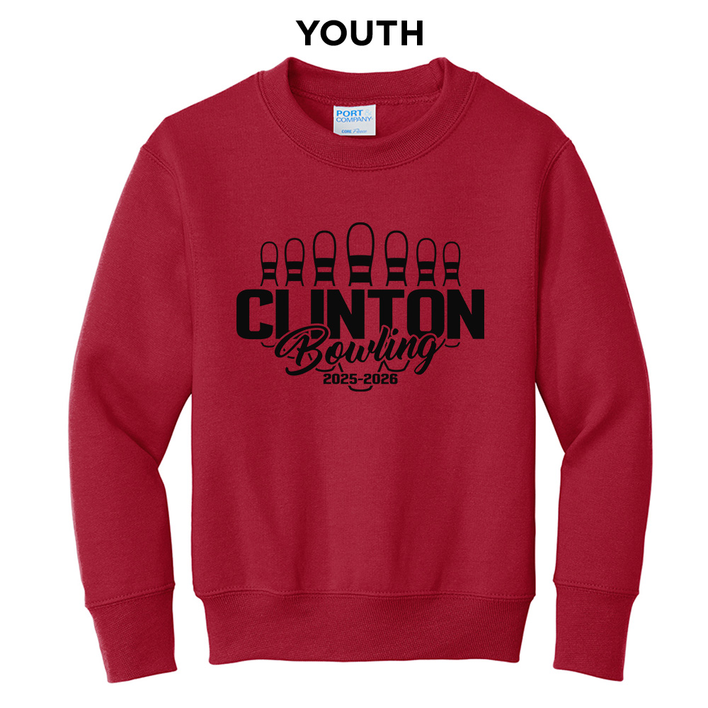 Clinton Bowling Youth Fleece Crewneck Sweatshirt-Red