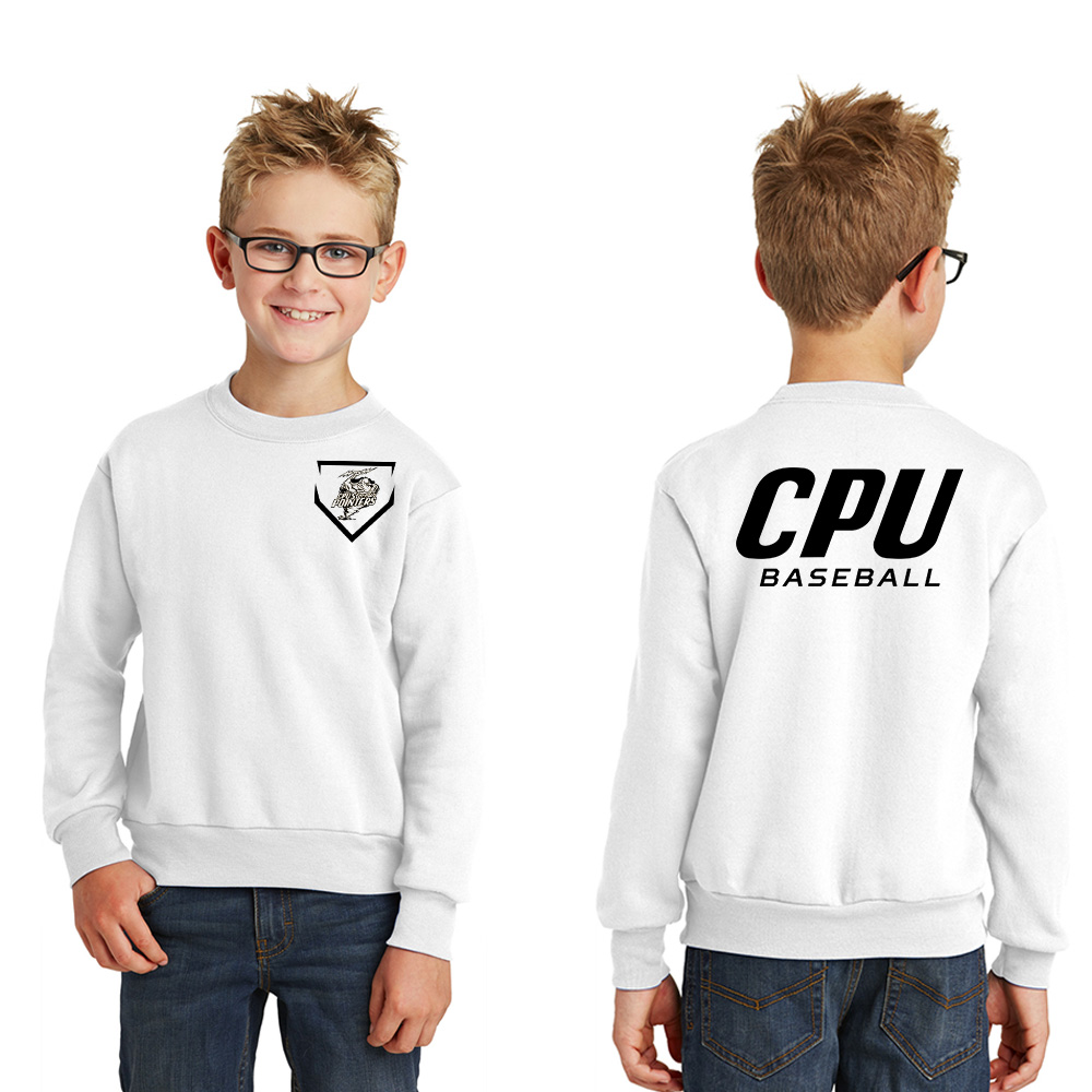 CPU Baseball Youth Fleece Crewneck Sweatshirt-White