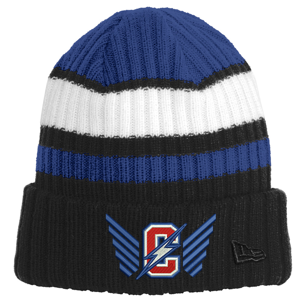 Ribbed and striped, this warm beanie is perfect for team events or everyday wear. A tonal embroidered New Era flag adds subtle character.