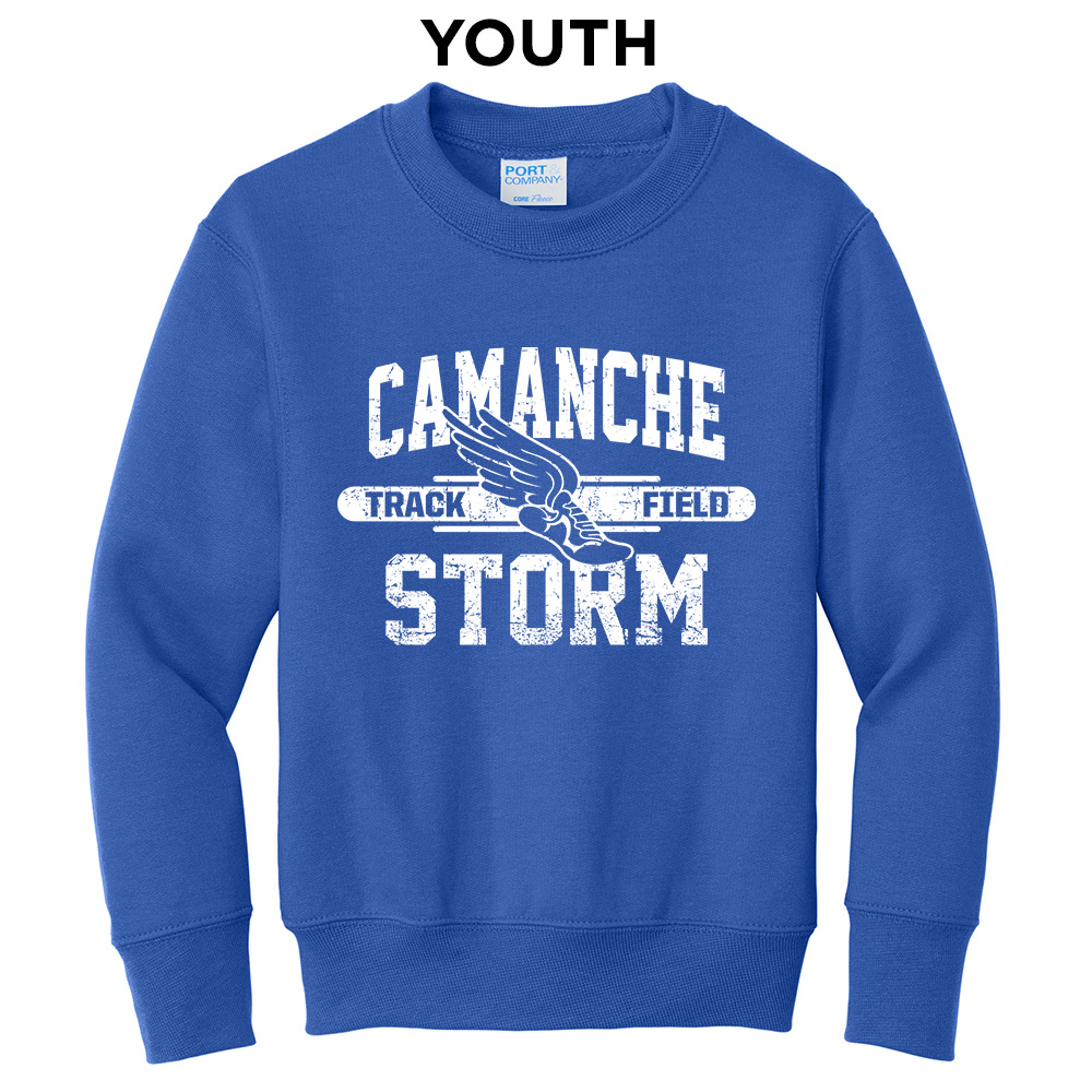 Camanche Track Field Youth Fleece Crewneck Sweatshirt-Royal