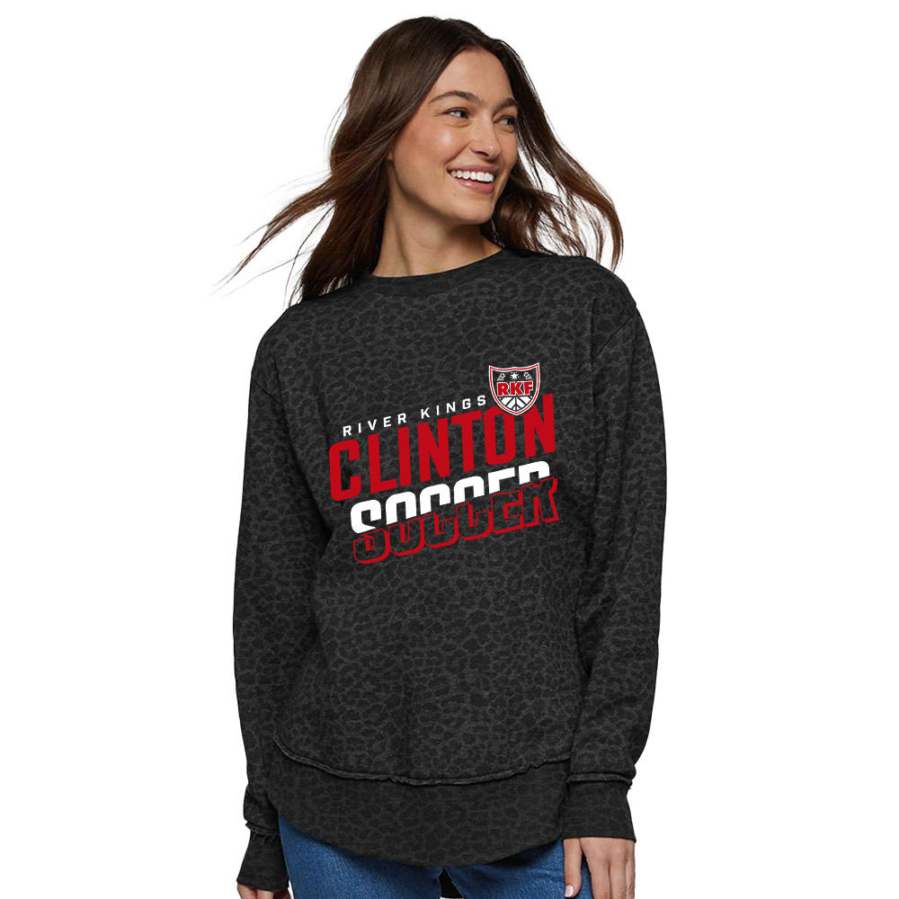 River King Soccer LAT Women’s Weekend Fleece Crewneck Sweatshirt-Black Leopard