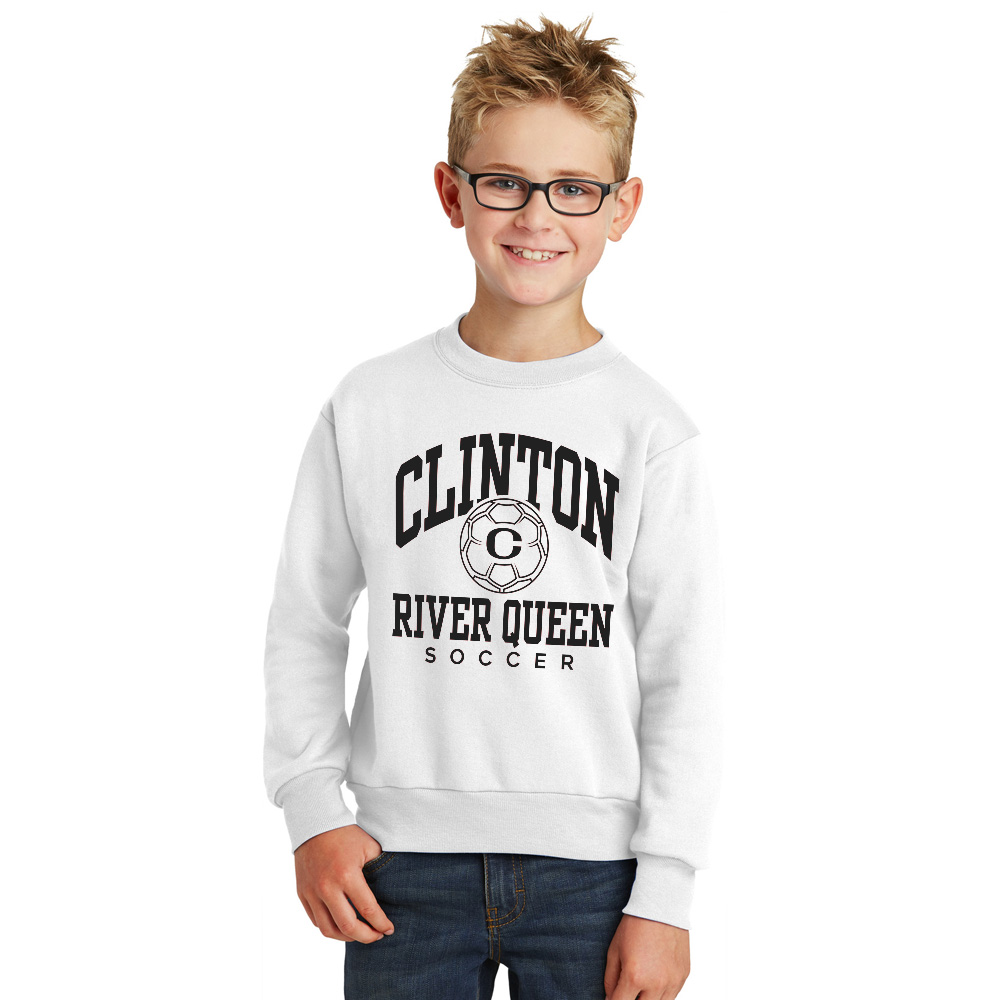 River Queen Soccer Youth Fleece Crewneck Sweatshirt-White