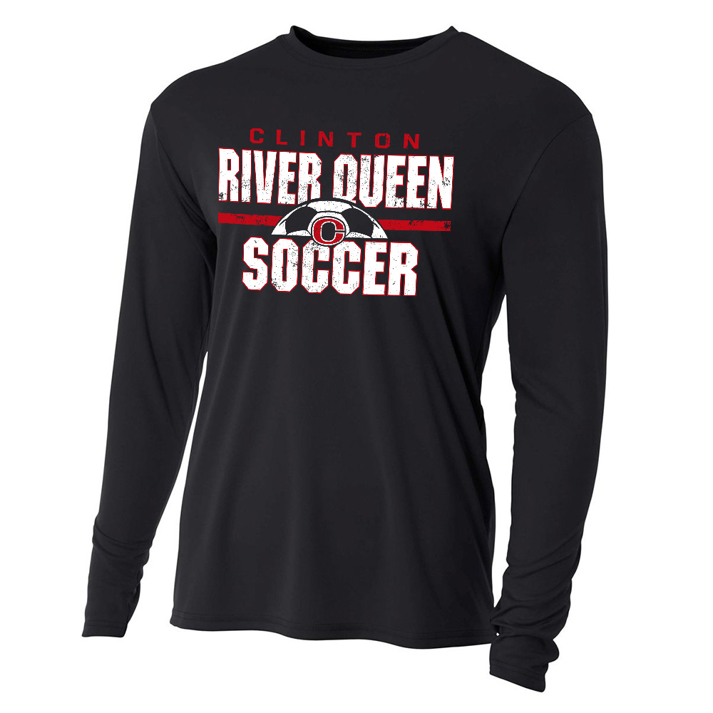 River Queen Soccer Men Adult Cooling Performance long sleeve Crew Tee -Black TEAM WARM UP