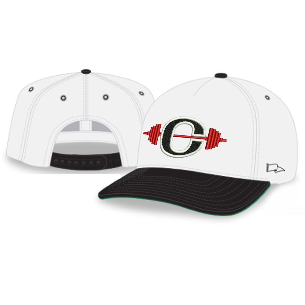Clinton Strength Rah-Rah 5-Panel Chino Twill Snapack Cap-White/Black/ Green Underbill