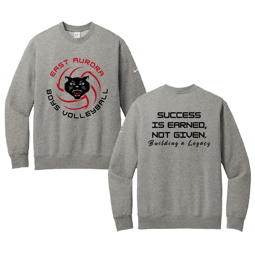 EA Boy Volleyball Nike Club Fleece Sleeve Swoosh Crew Adult -Dark Grey Heather