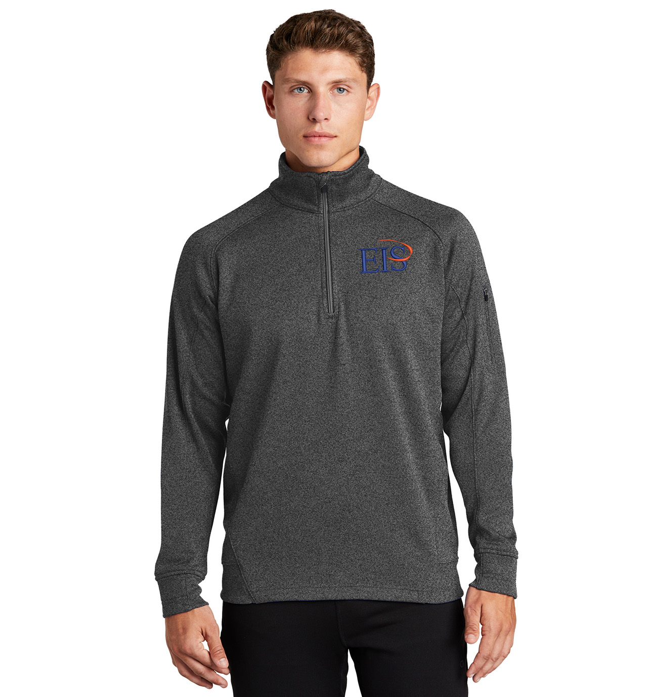 Cool, dry and colorfast, this quarter-zip pullover has a pill-resistant, snag-resistant face with a matte finish and brushed backing for comfort. It features double-knit construction, as well as a zippered pocket on the left sleeve and a chin guard.