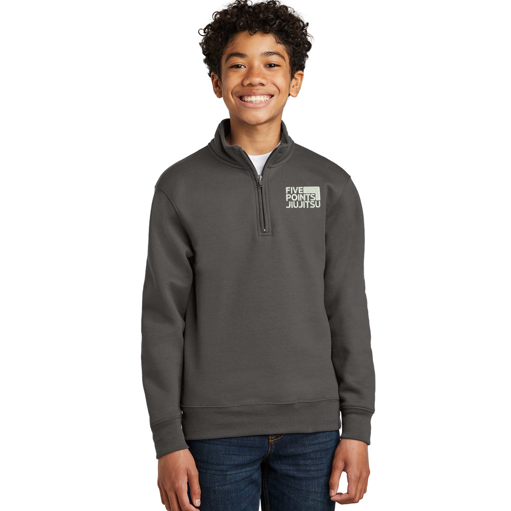 Five Point Jiu Jitsu Youth Core Fleece 1/4-Zip Pullover Sweatshirt-Charcoal