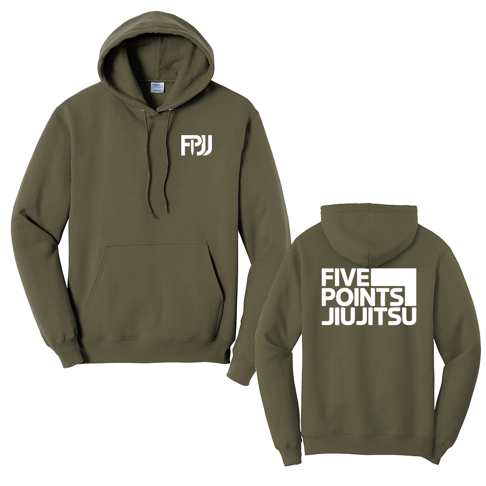 Five Point Jiu Jitsu Unisex Fleece Hooded Sweatshirt-Olive Drab Green