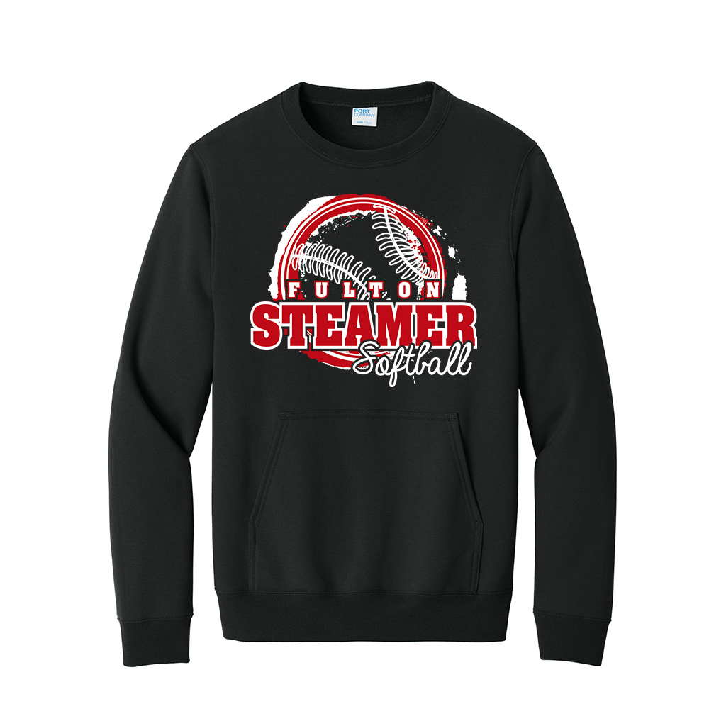 Steamer Softball Unisex Core Fleece Crewneck Pocket Sweatshirt-Black