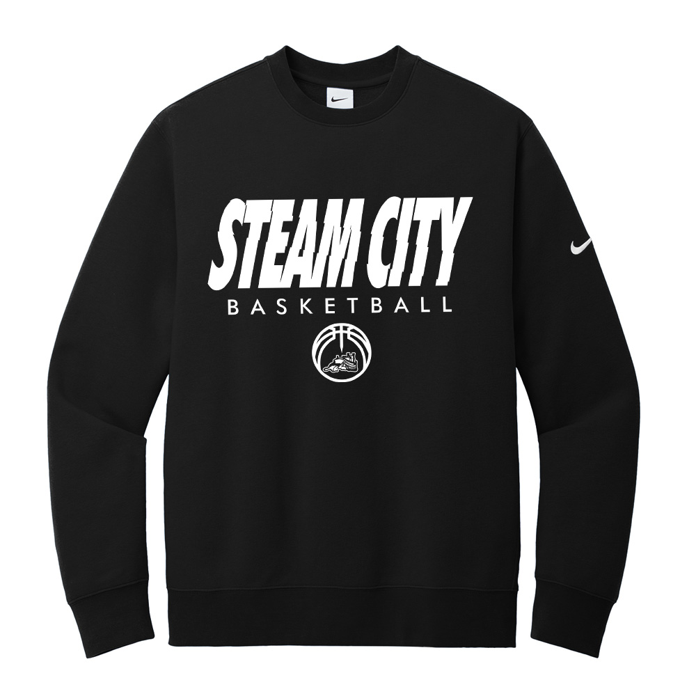 Steamer Boys Basketball Nike Club Fleece Sleeve Swoosh Crew Adult-Black