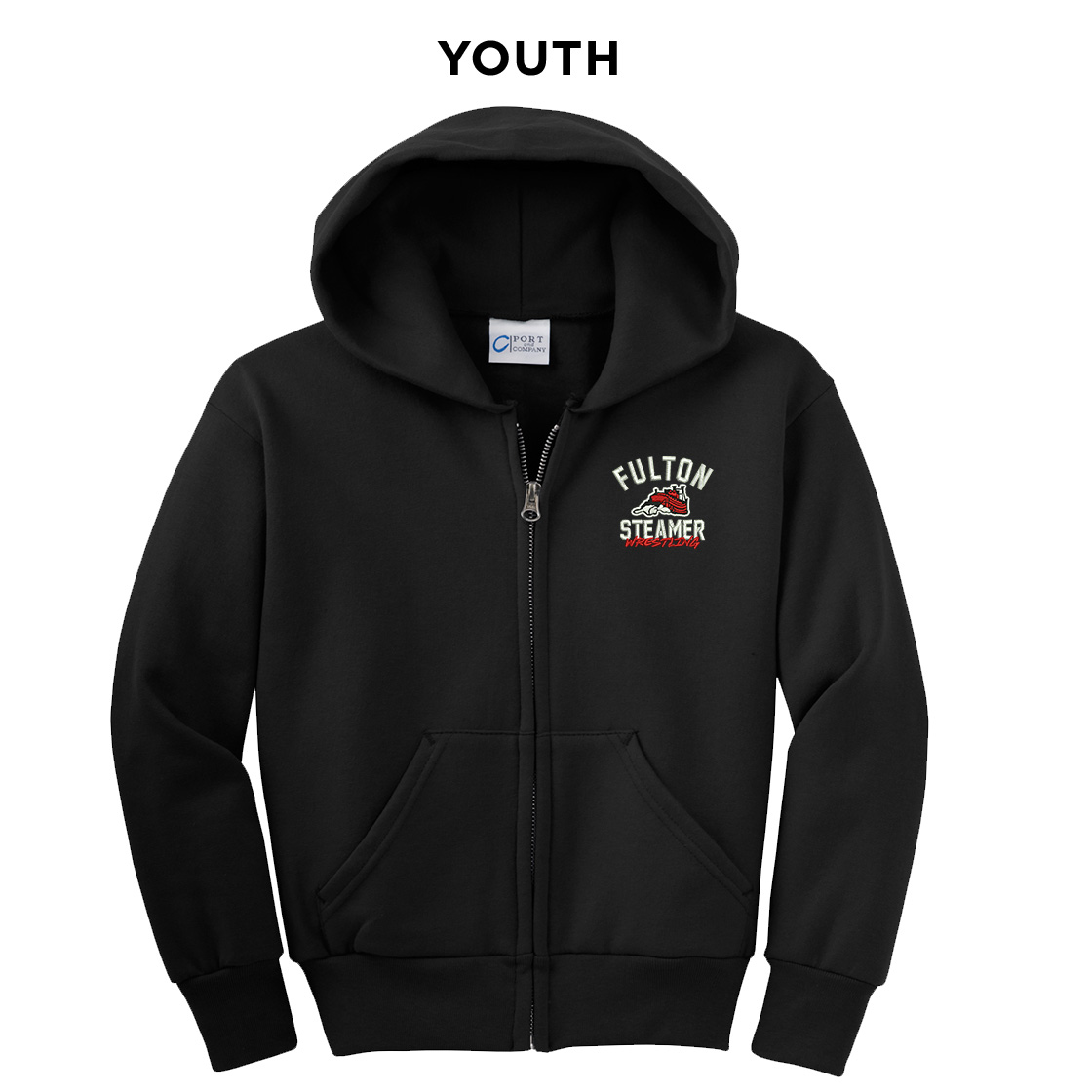 Fulton Wrestling Youth Company Classic Full-Zip Hooded Sweatshirt-Black