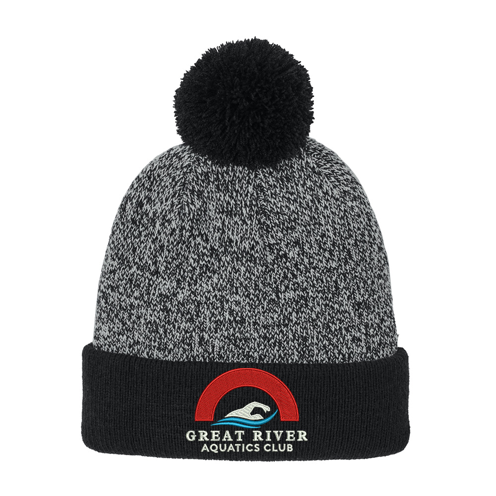 100% acrylic Five darts at crown for shaping Adjustable 3-inch cuff Double layered for warmth One-time removable pom