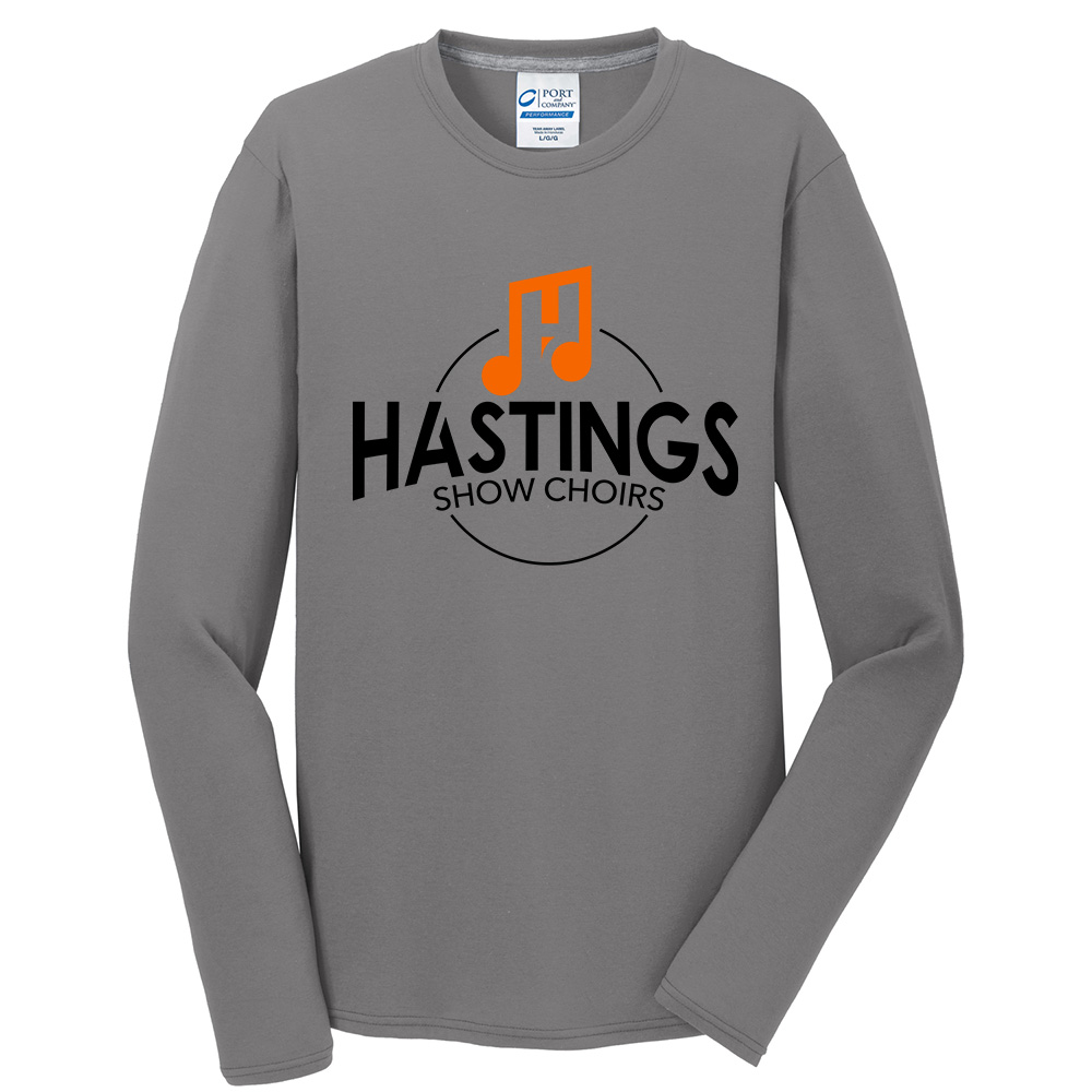 Hastings Show Choir Men Long Sleeve Essential Blended Performance Tee-Medium Grey