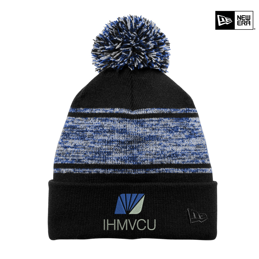 Three contrast stripes give a retro nod to this pom beanie, while the marled yarns put it right on-trend.