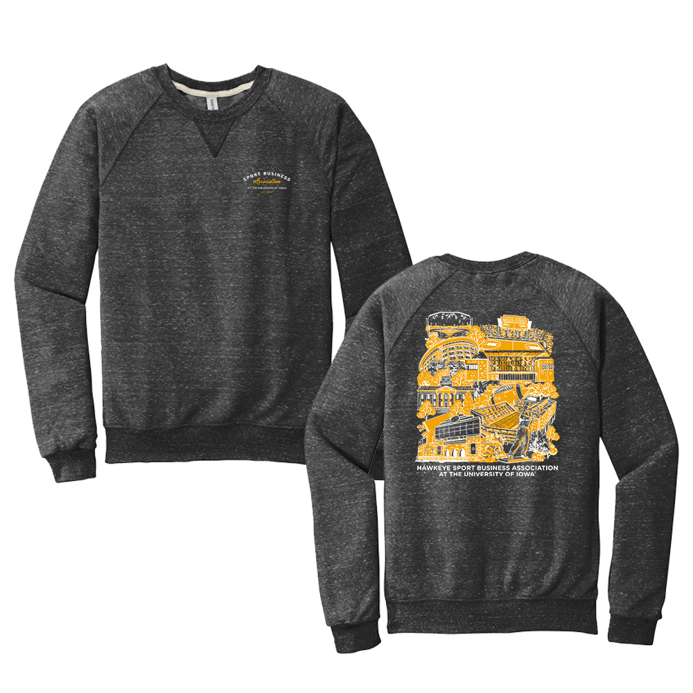 Hawkeye Sport Business Unisex Jerzees Snow Heather French Terry Raglan Crew-Black ink