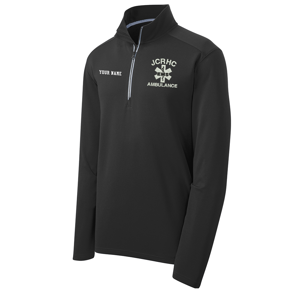 This mid-weight pullover has an unbeatable textured look with contrast zipper taping. Plus, it performs by wicking moisture.