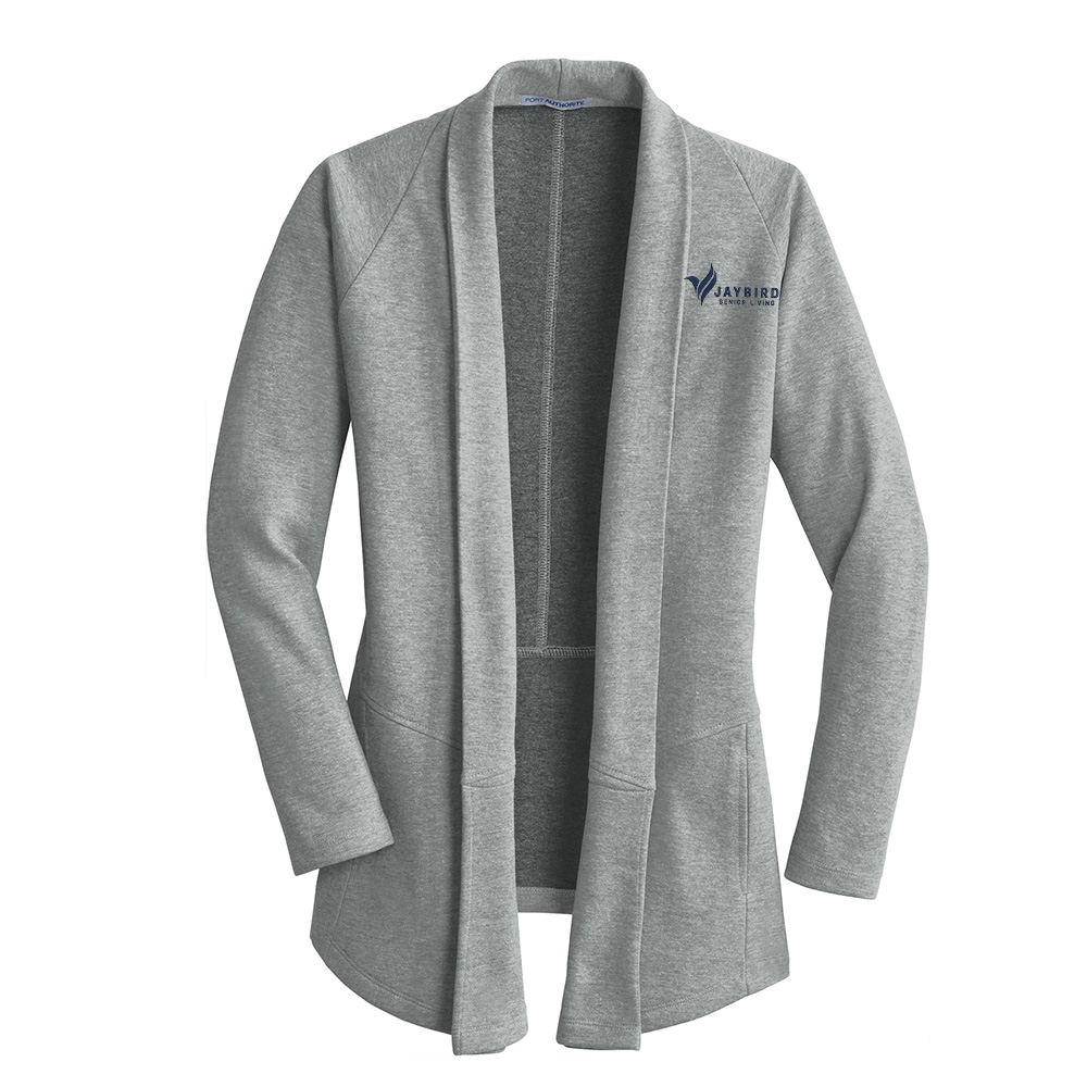 This lightweight, dual-color cardigan layers beautifully and has a timeless appeal. An open front and front and back seaming details at the waist give it sophistication.