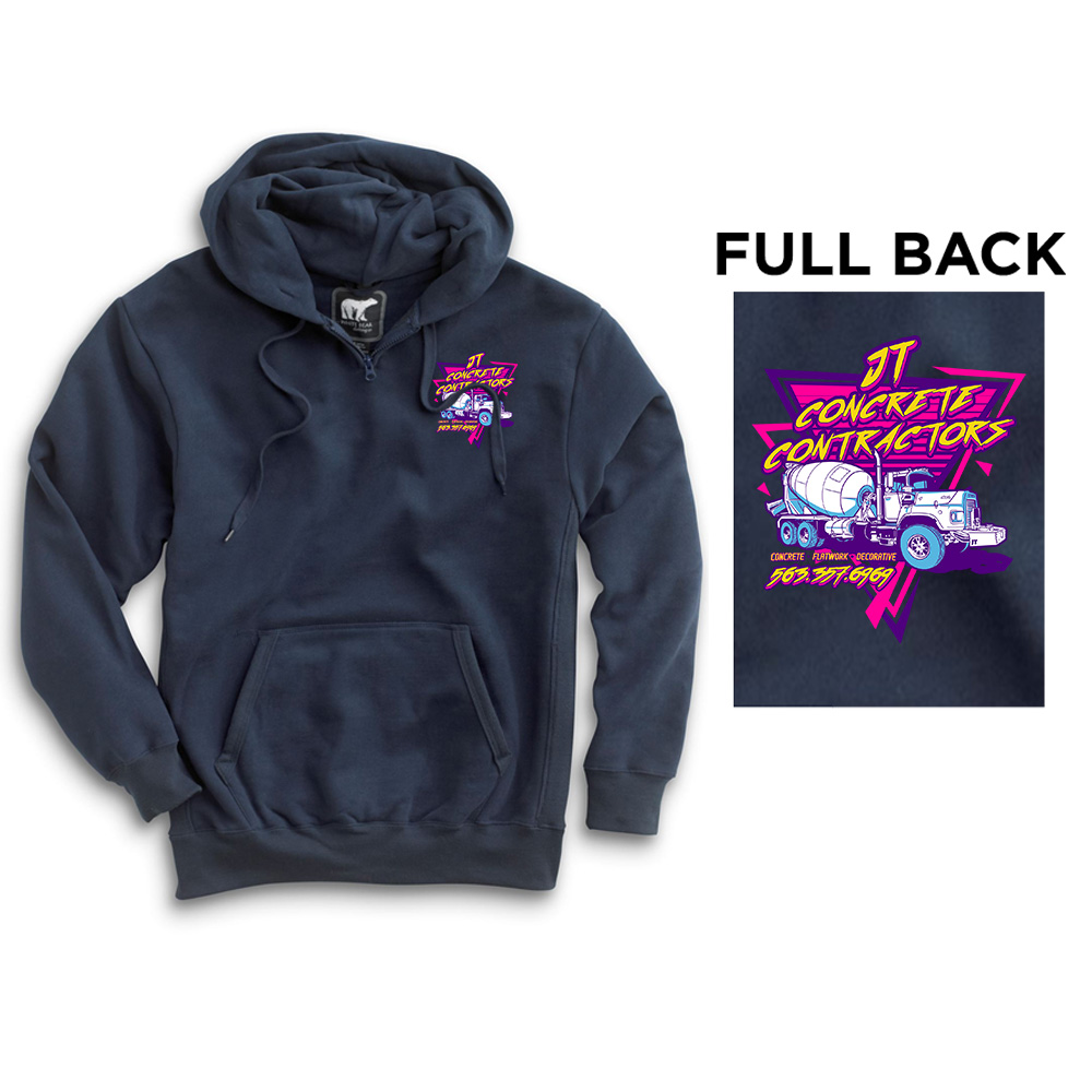 JT Concrete Contractors White Bear Adult Premium Heavyweight Pocket Hooded Sweatshirt with Zipper-Navy