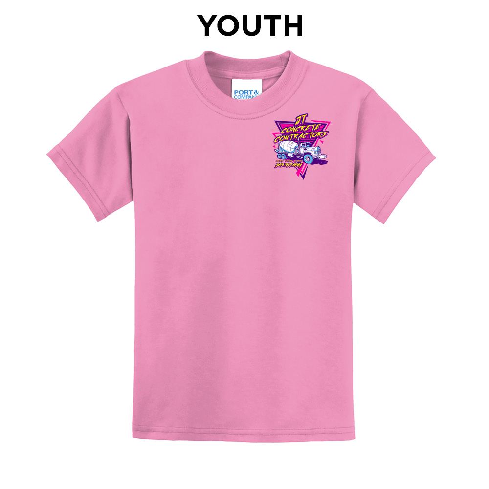 JT Concrete Contractors Youth Short Sleeve Tee-Candy Pink