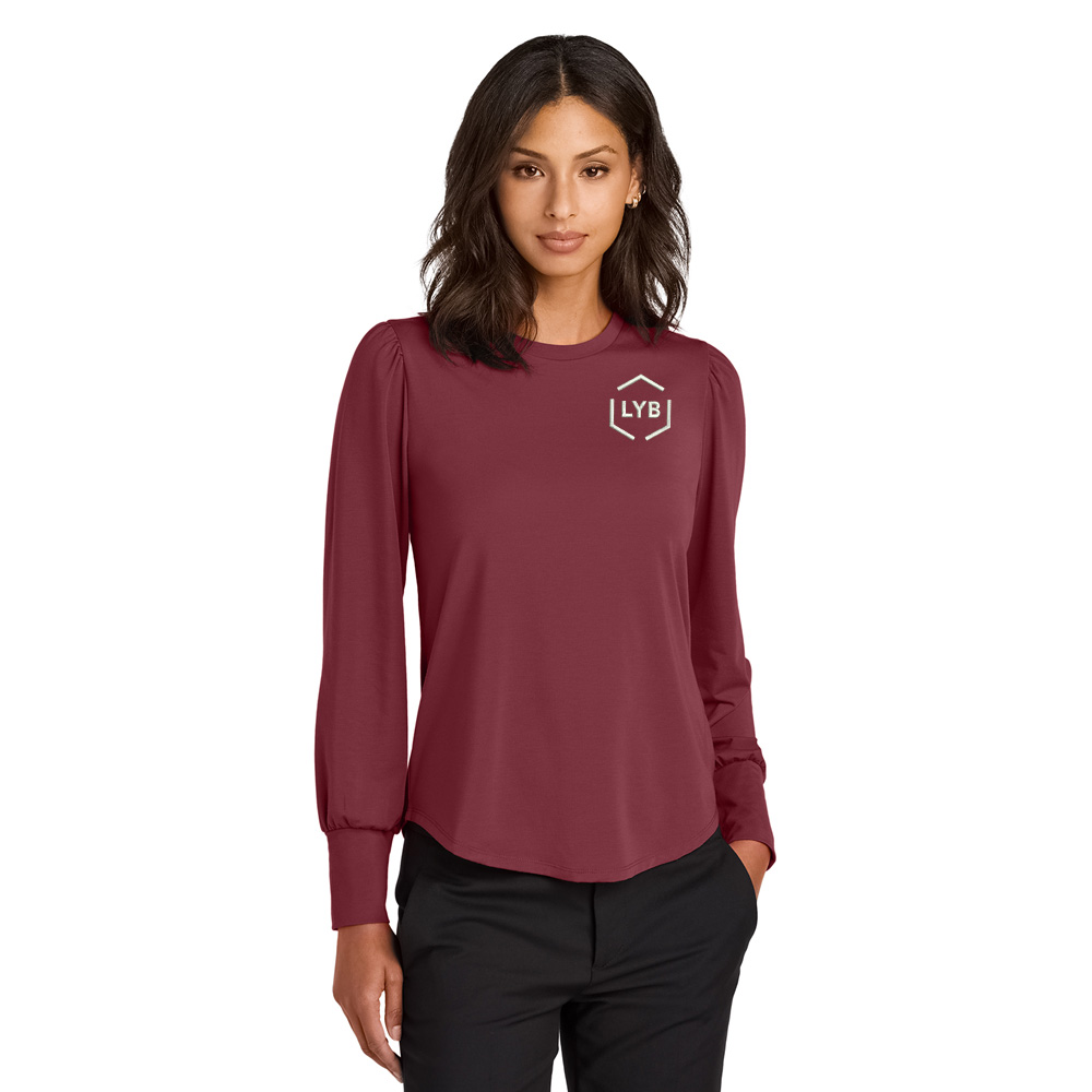 Delicately puffed blouson sleeves and a jewel neckline help create a feminine silhouette in this top that leans into a fashionable feel. Designed to be worn tucked or untucked, this flattering style is perfectly at ease in dressy or casual occasions.