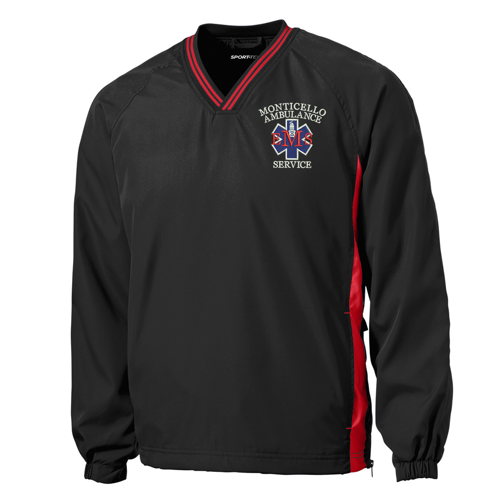 Monticello EMS Sport-Tek Men Sport-Wick Stretch 1/2-Zip Colorblock Pullover-Black/Red