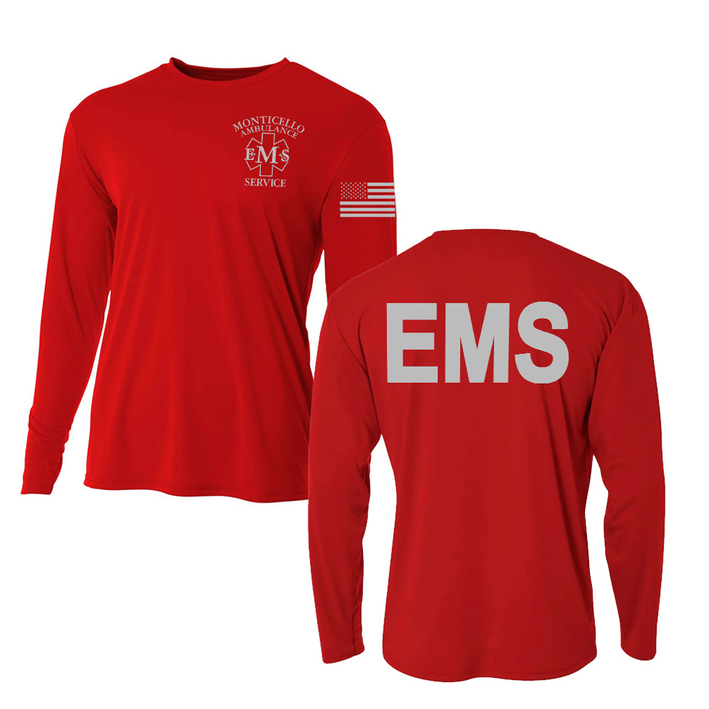 Monticello EMS Adult Men Cooling performance long sleeve hooded Tee-Red