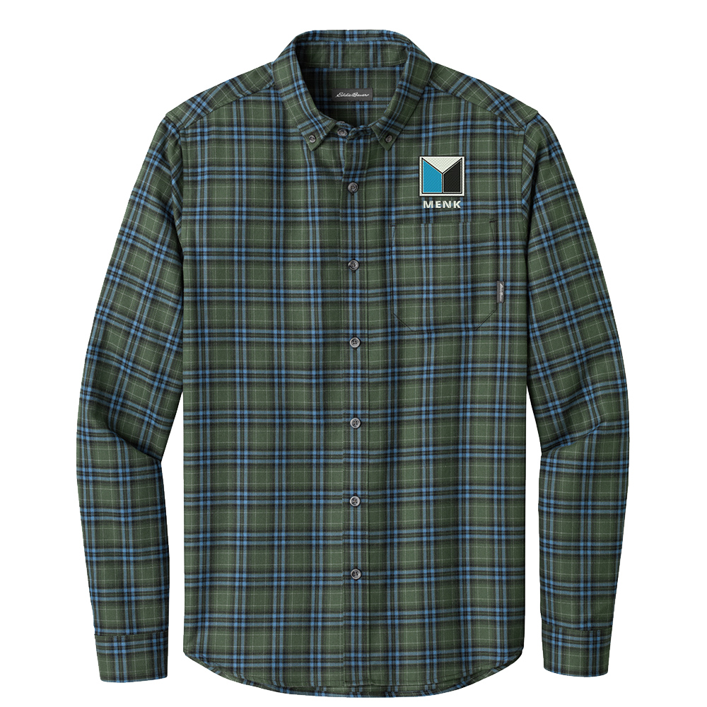 Woven Eddie Bauer logo at left chest pocket hem