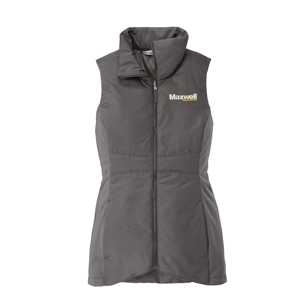 Insulation and stretch soft shell side panels make this vest a versatile, flattering and cozy cold-weather layer.