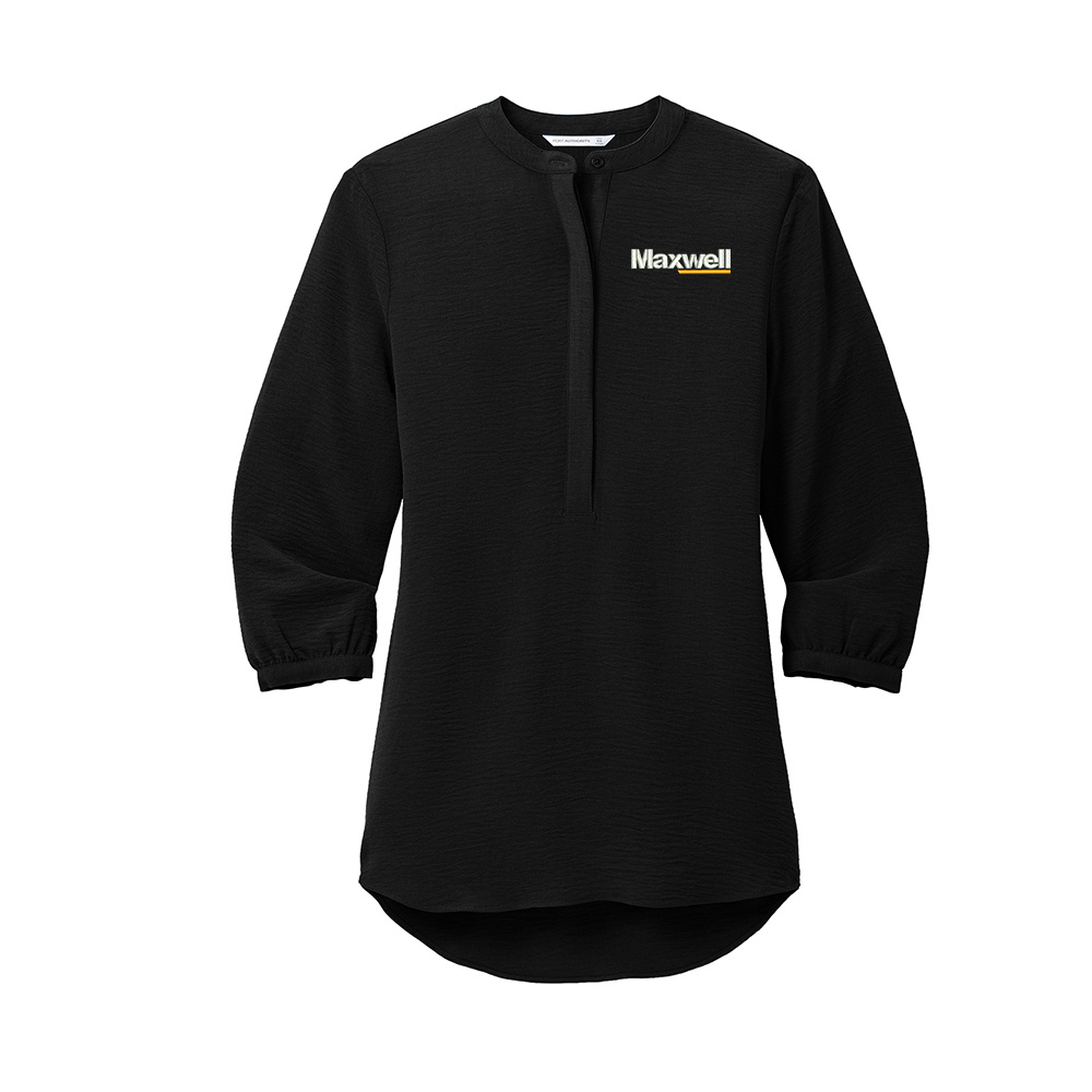 This beautifully draped tunic makes a statement with its longer length and accentuated gathers at the back yoke.