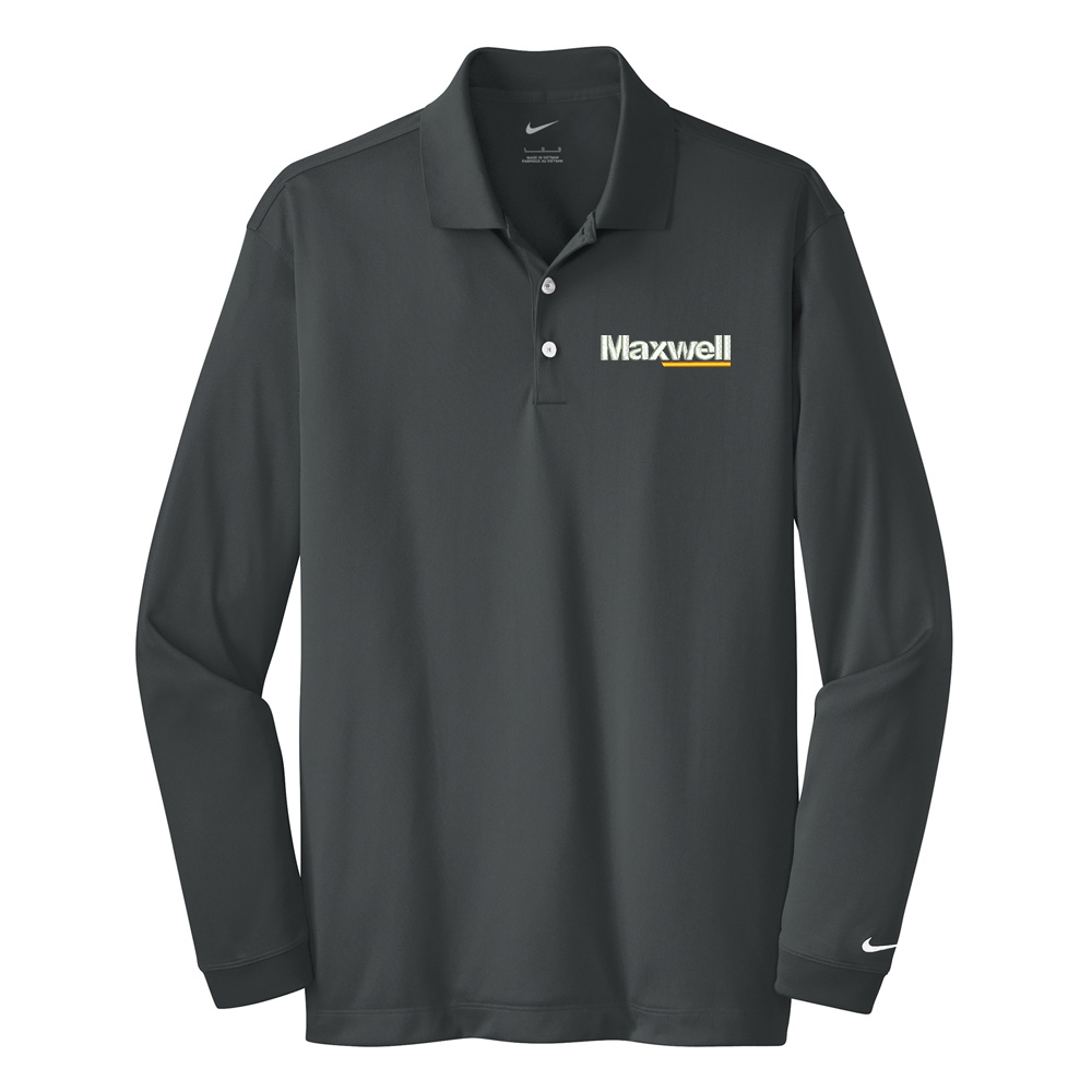 Long sleeves elevate this polo to another level of sophistication while Dri-FIT moisture management technology adds unparalleled performance. Stretch fabric for hassle-free swinging motion. Flat knit collar and cuffs. Heat transfer label for tag-free comfort. Three-button placket. Dyed-to-match buttons on White, Black and Midnight Navy. White buttons on Varsity Red, Anthracite and Blue Sapphire. The contrast Swoosh design trademark is embroidered on the lower left sleeve. Side vents. Made of 5-ounce, 100% polyester Dri-FIT fabric.