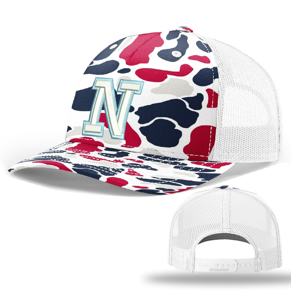 Rebels Baseball Richardson Printed Five PanelTrucker mesh snap back cap-Americana Duck Camo White