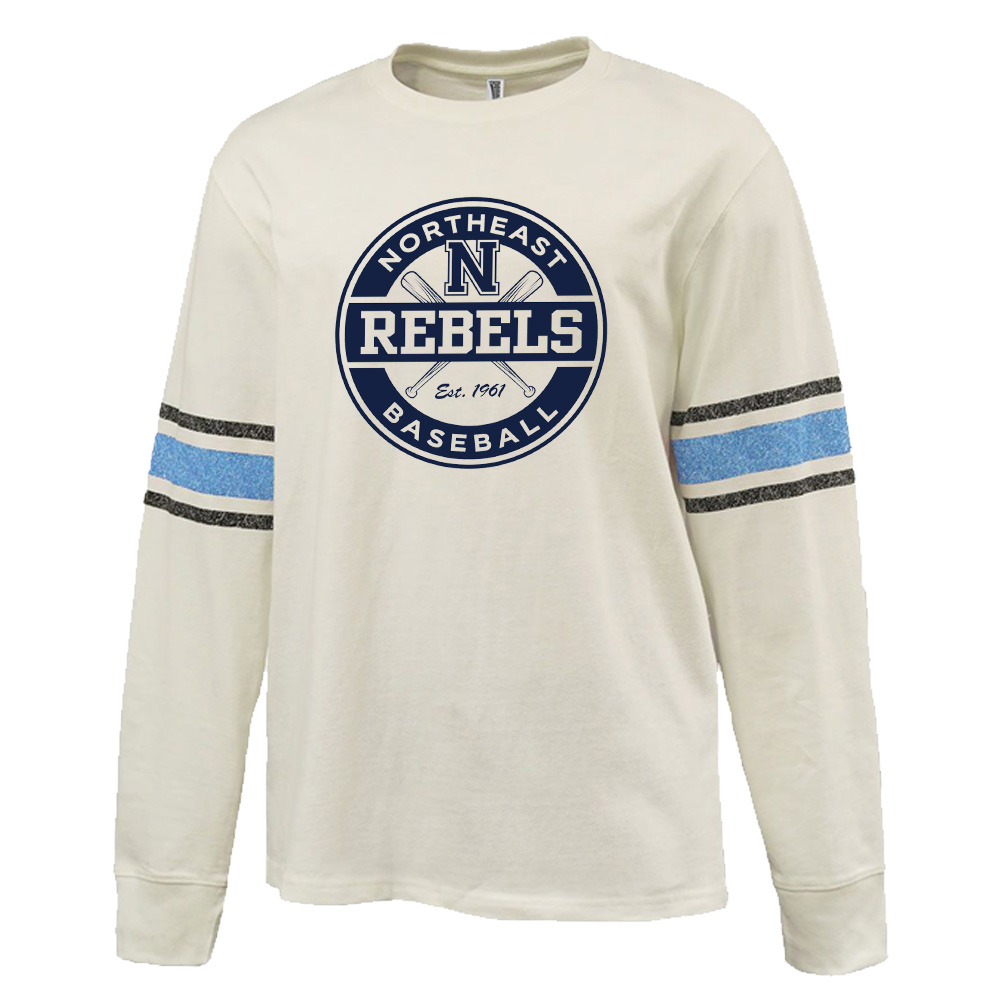 Rebels Baseball Pennant HEAVYWEIGHT 8.0 oz. antique white cotton jersey archive-style printed sleeve stripe-Navy/Black