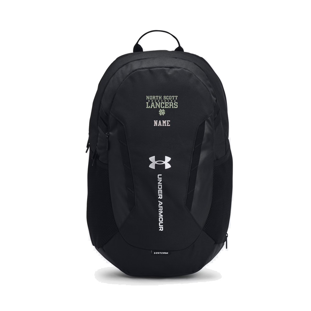 Adjustable, removable UA Strap Clip on shoulder to prevent duffle bag from falling off when carrying both