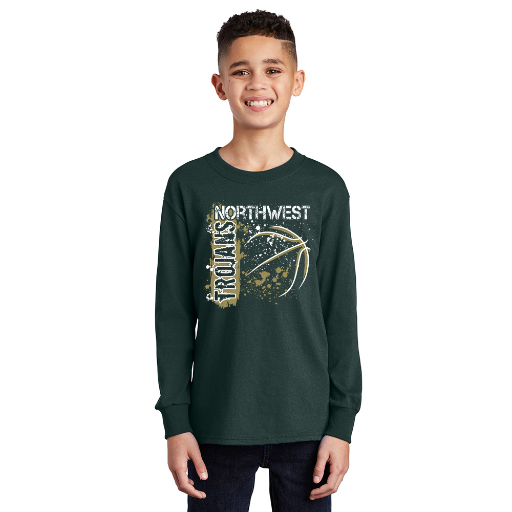 NW Basketball Youth Cotton Long Sleeve Tee-Dark Green